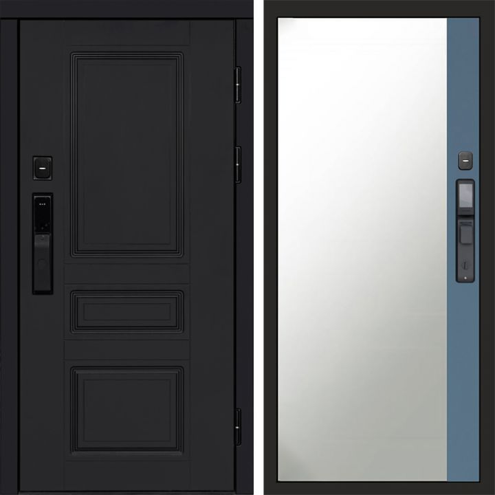 Входная дверь Termo-door ОРЕГОН BLACK с электронным замком Зеркало Черный Кварц+Тонировка