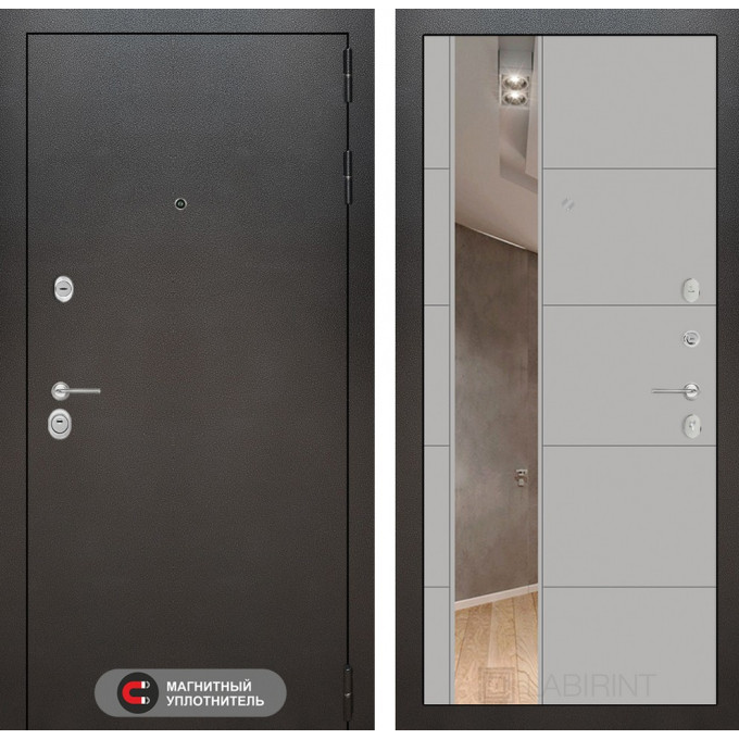 Входная дверь Лабиринт SILVER - Зеркало 19 Грей софт