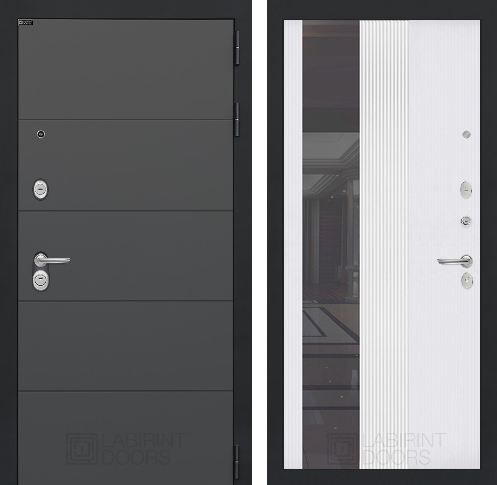 Входная дверь Лабиринт ART - 32 Зеркало Белый софт рельеф