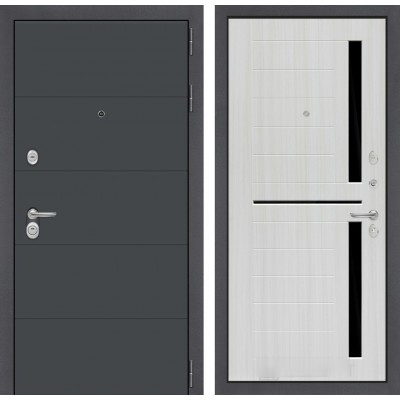 Входная дверь Лабиринт ART - 02 Сандал белый стекло черное