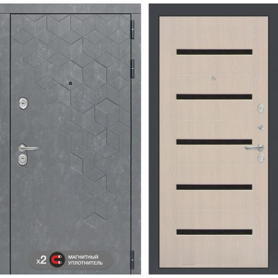 Входная дверь Лабиринт BETON - 01 Беленый дуб стекло черное