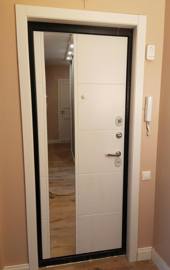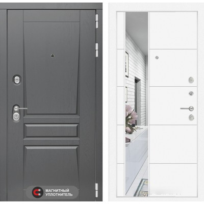 Входная дверь Лабиринт PLATINUM - Зеркало 19 Белый софт