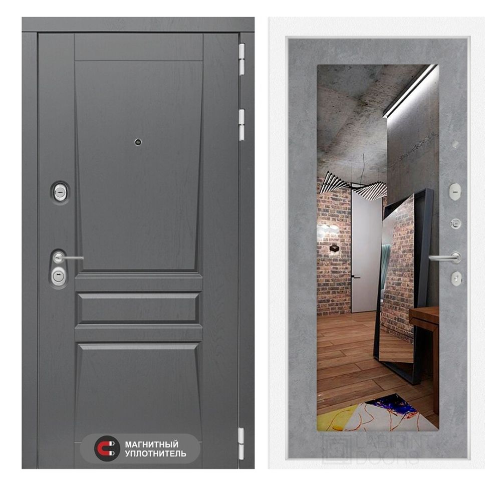 Входная дверь Лабиринт PLATINUM - Зеркало 18 Бетон светлый