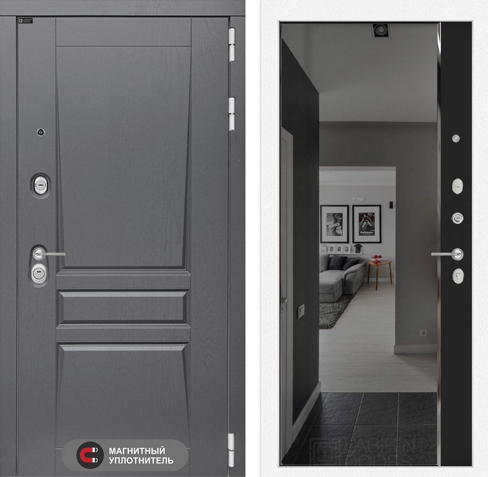 Входная дверь Лабиринт PLATINUM - Зеркало панорама с тонировкой Черный кварц