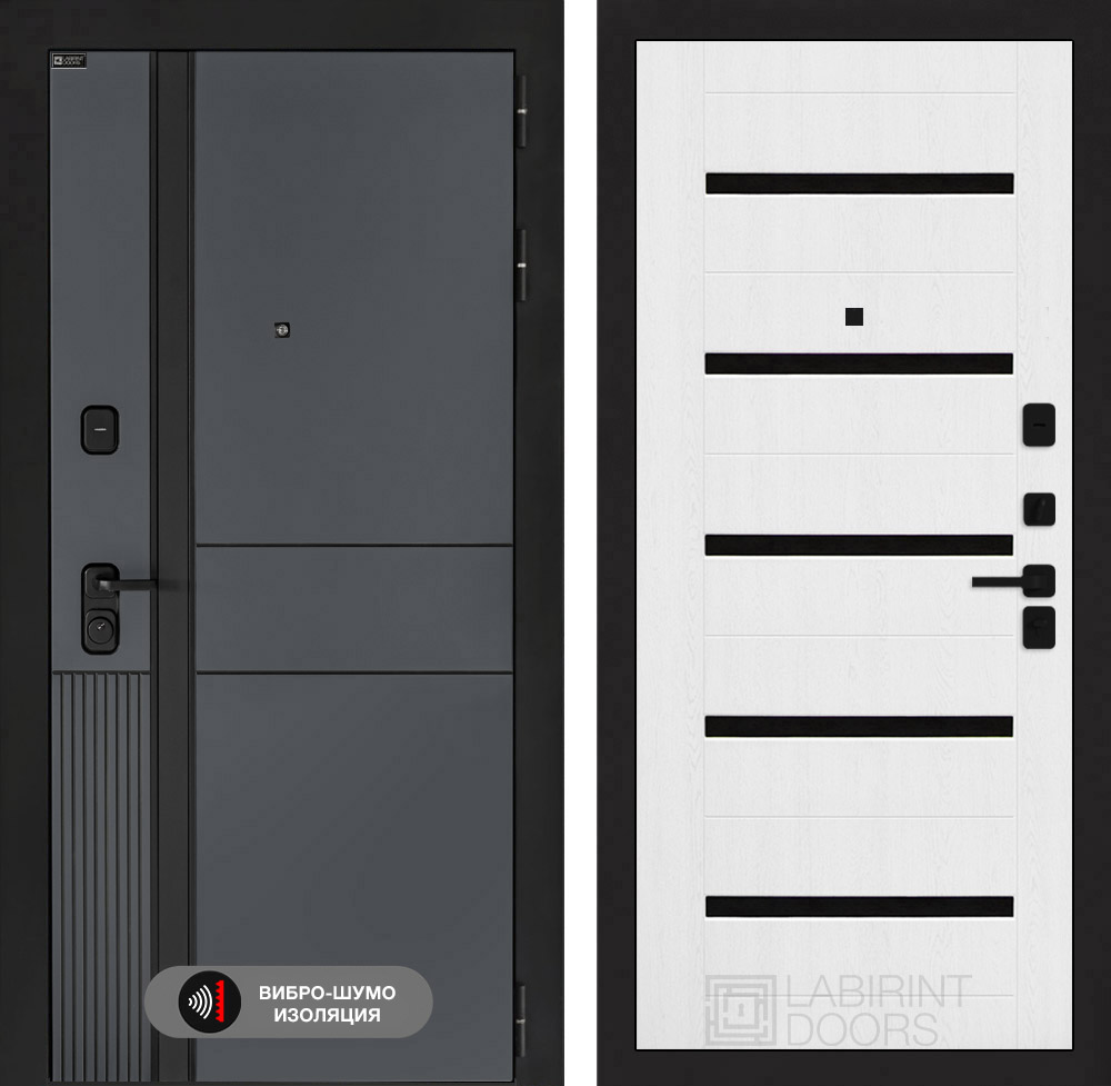 Дверь входная Лабиринт EVOLAB 01 Белое дерево стекло черное