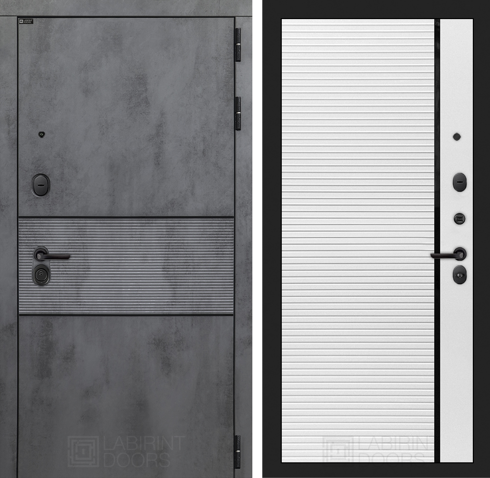 Входная дверь Лабиринт INFINITY - 22 Белый софт, черная вставка