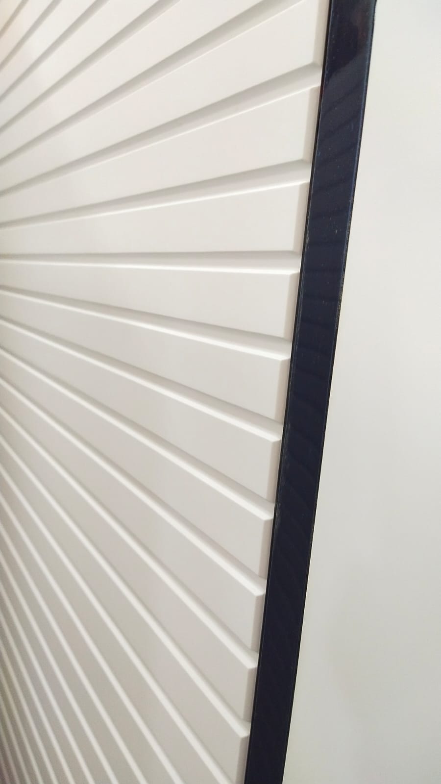 Фрезерованная МДФ панель 10 мм, цвет "Бетон темный" с черным молдингом