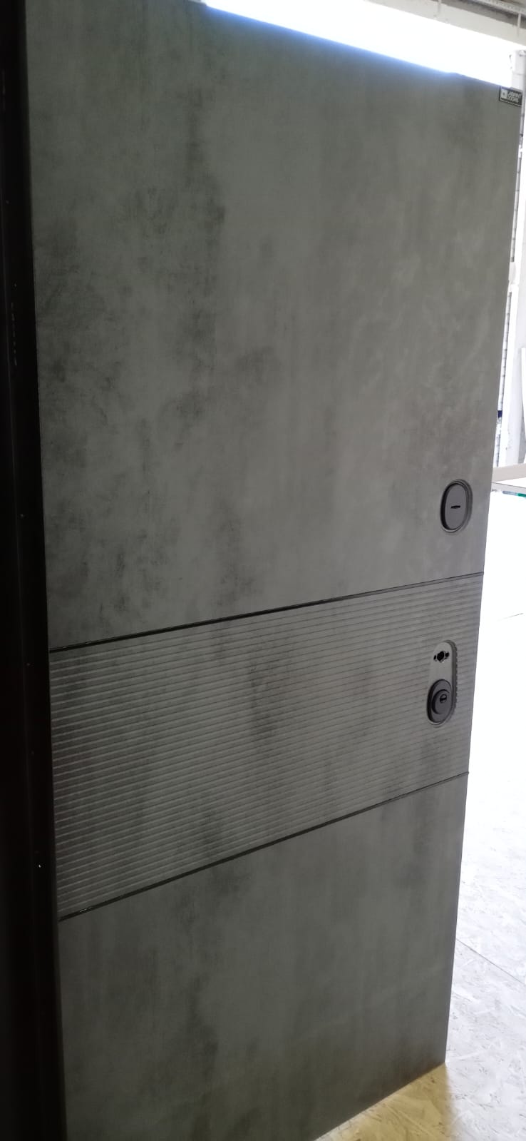Фрезерованная МДФ панель 10 мм, цвет "Бетон темный" с черным молдингом