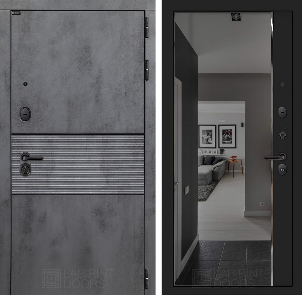 Входная дверь Лабиринт INFINITY - Зеркало панорама с тонировкой Черный кварц