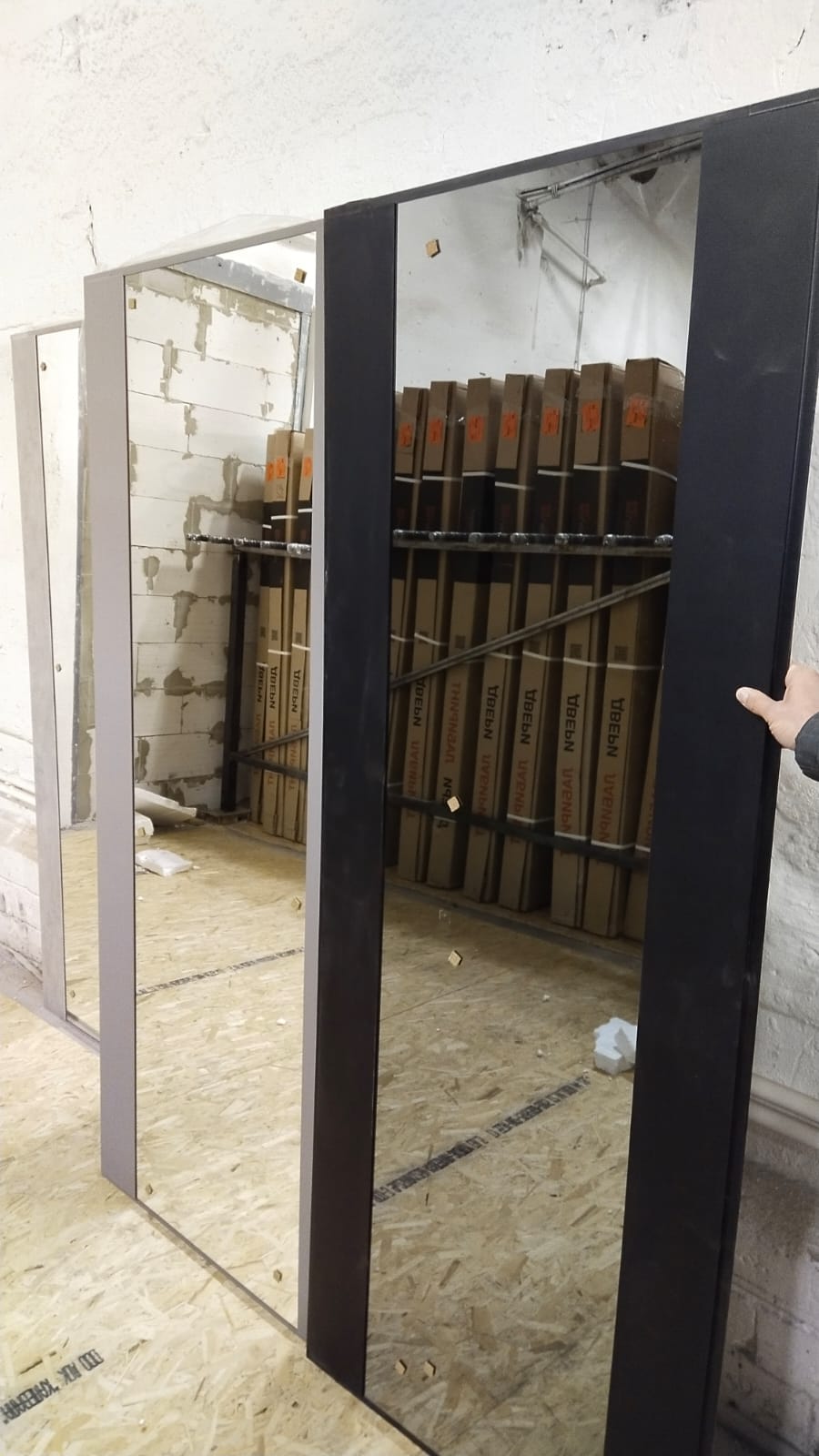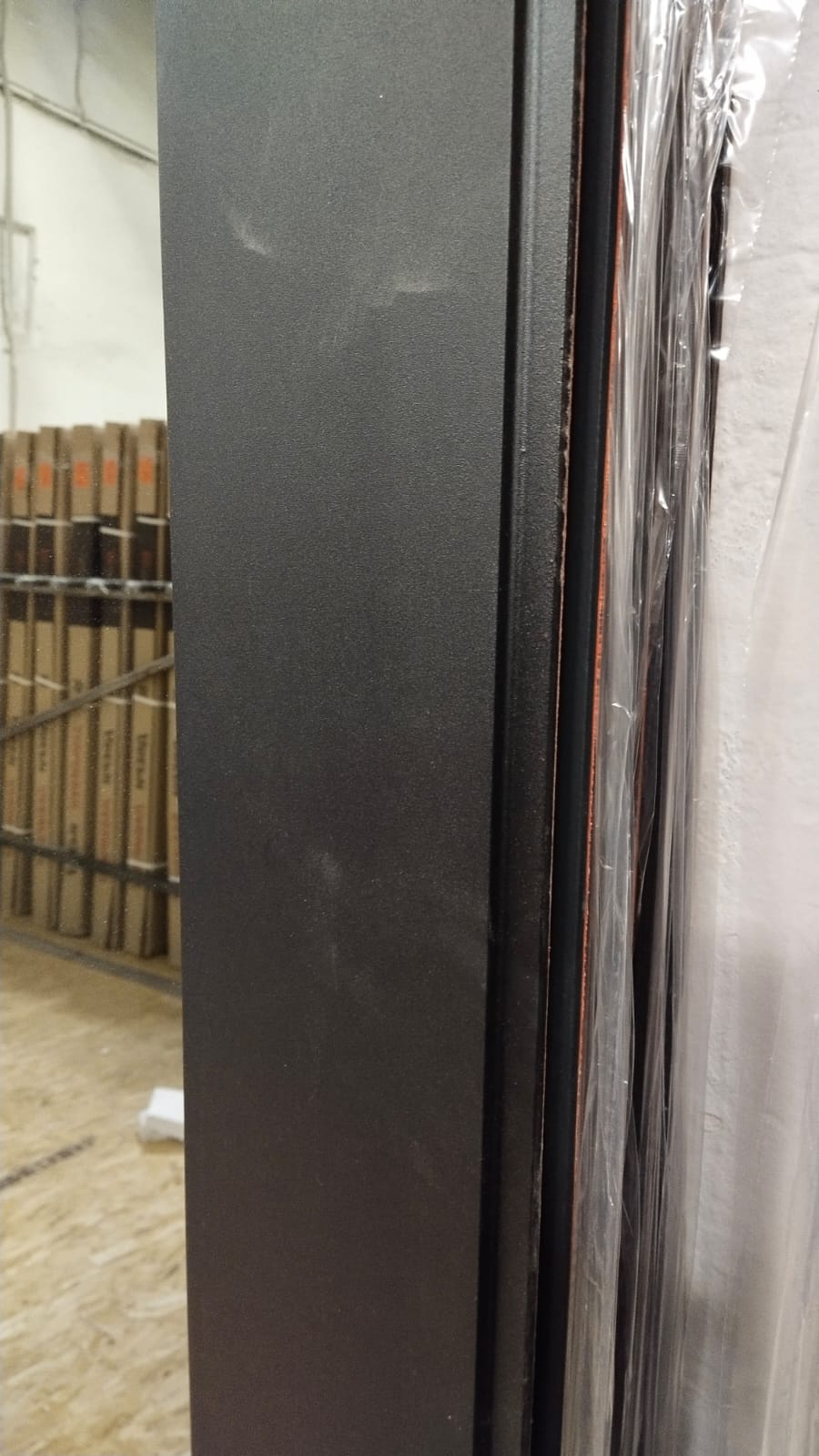 Фрезерованная МДФ панель 10 мм, цвет "Бетон темный" с черным молдингом