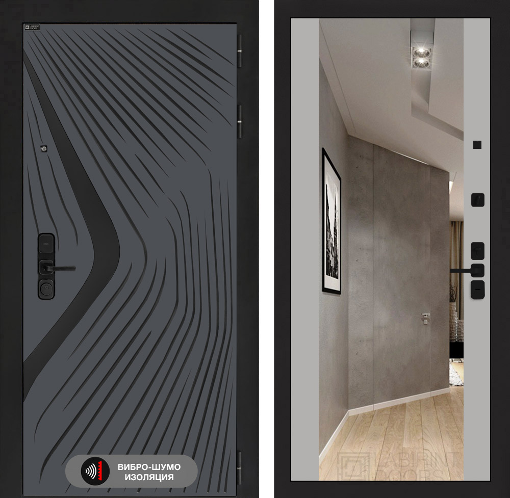 Дверь входная Лабиринт LEOLAB с зеркалом Максимум Грей софт