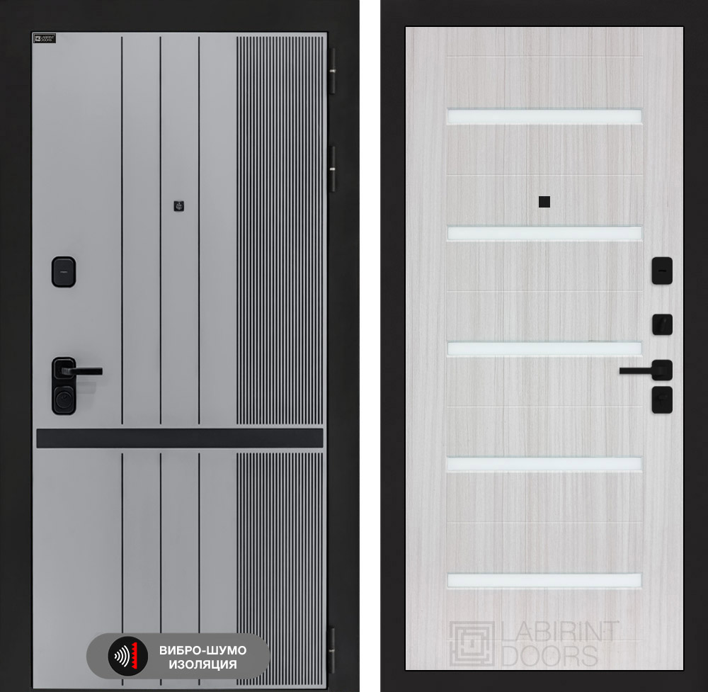 Дверь входная Лабиринт SKYLAB 01 Сандал белый стекло белое