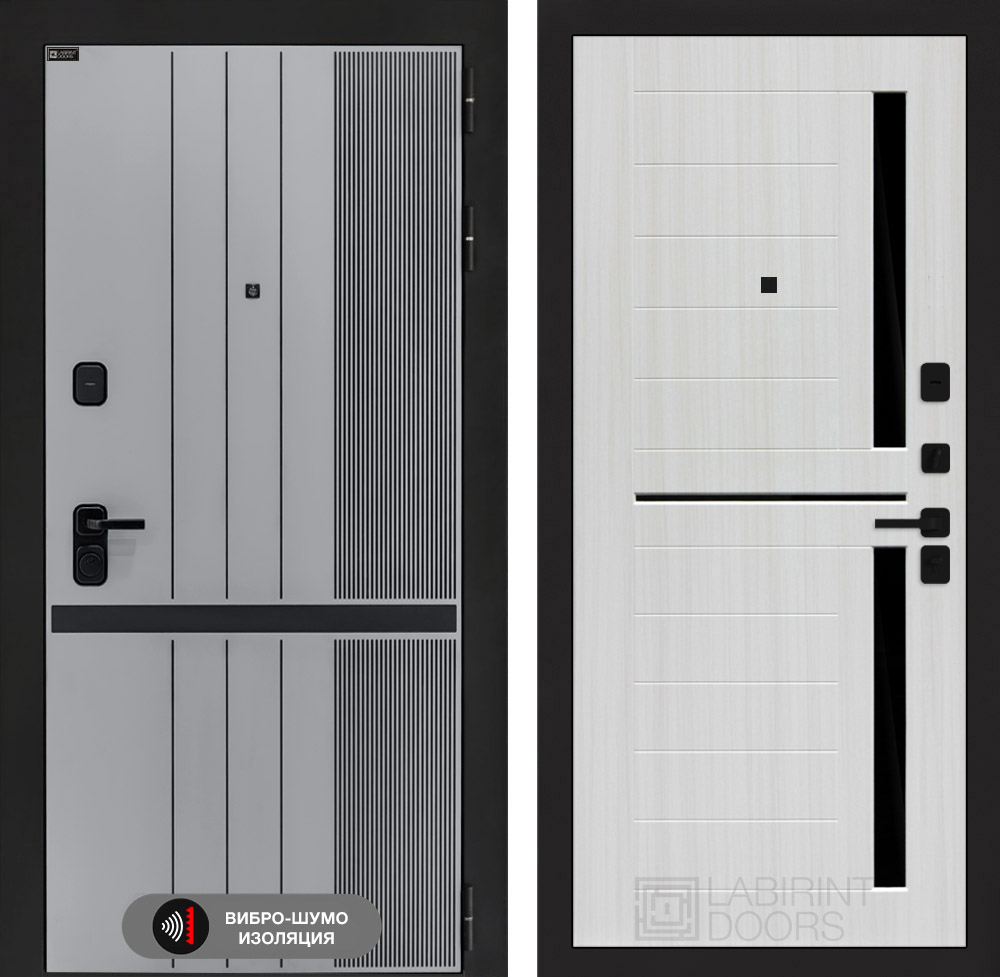 Дверь входная Лабиринт SKYLAB 02 Сандал белый стекло черное