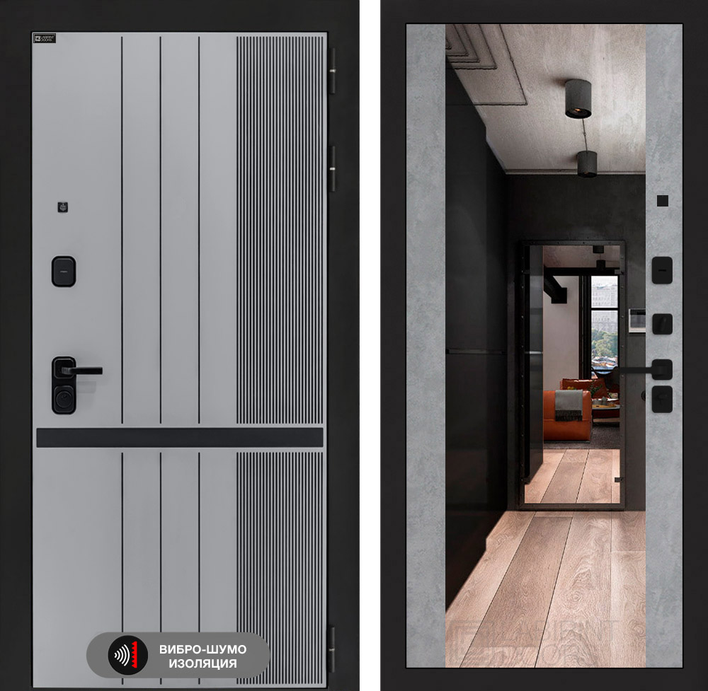 Дверь входная Лабиринт SKYLAB с зеркалом Максимум Бетон светлый