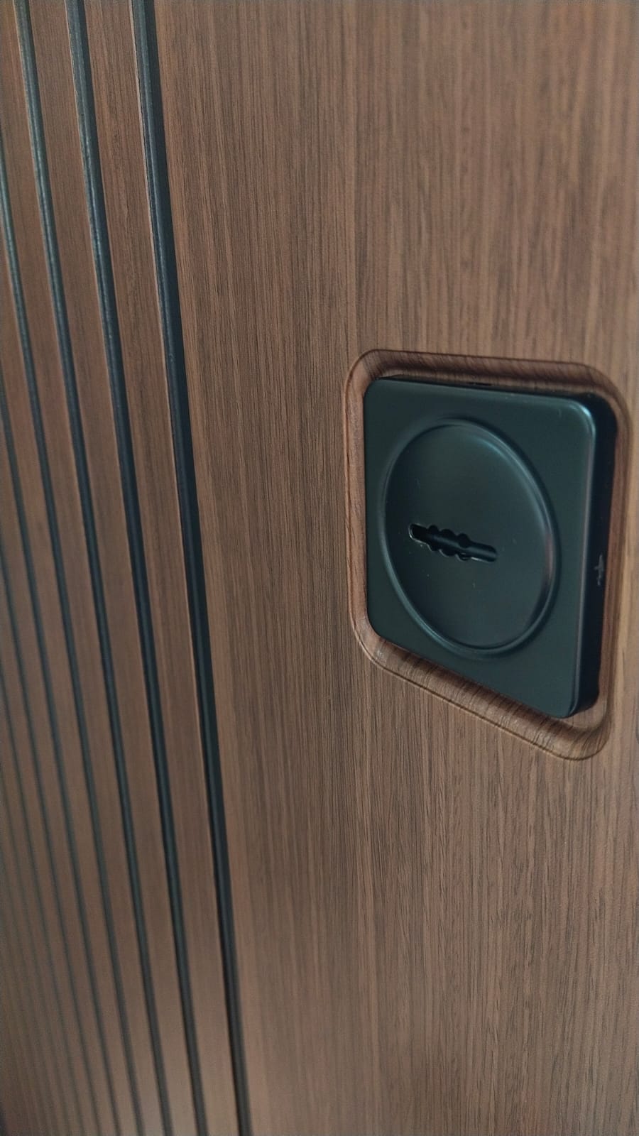 Фрезерованная МДФ панель 10 мм в цвете "Дуб кантри темный" с черной патиной, наличники "Черный кварц"