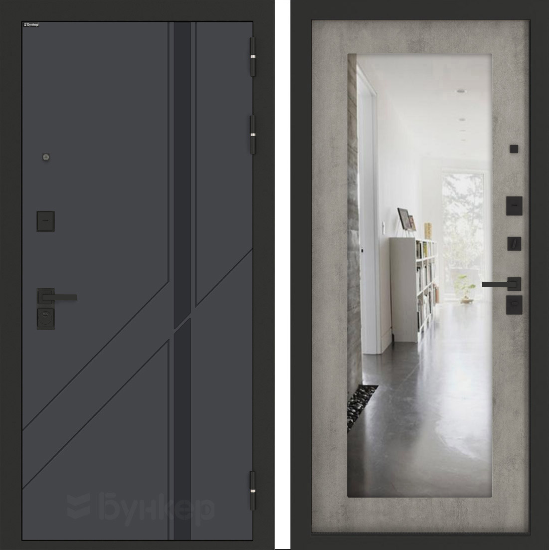 Входная дверь Бункер BN-12 - 18 Зеркало Бетон светлый