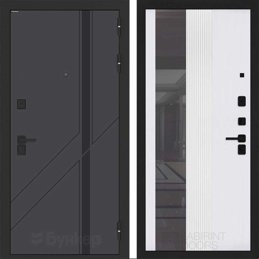 Входная дверь Бункер BN-12 - 32 Зеркало тонировка Белый софт рельеф