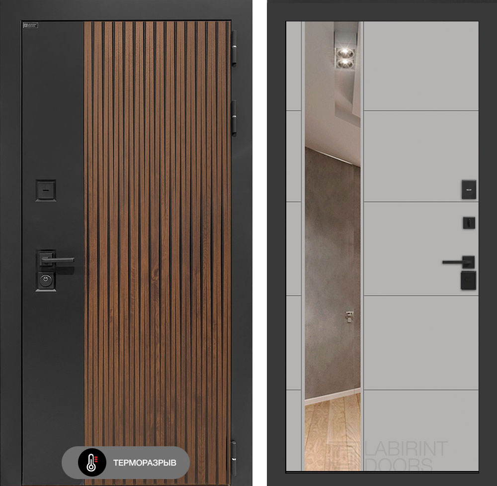 Входная дверь Лабиринт Айслаб - 19 Зеркало Грей софт с терморазрывом