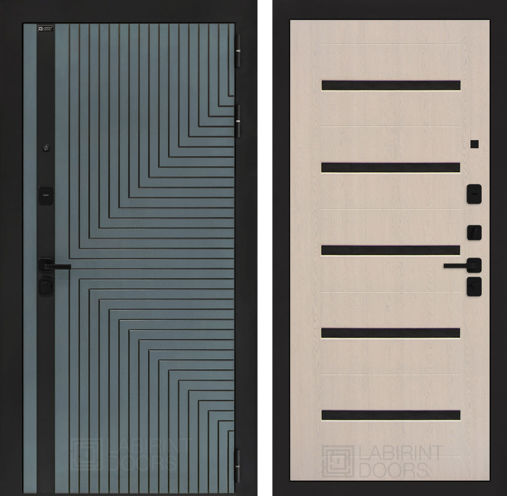 Входная дверь Лабиринт CREDOR 01 Беленый дуб, стекло черное
