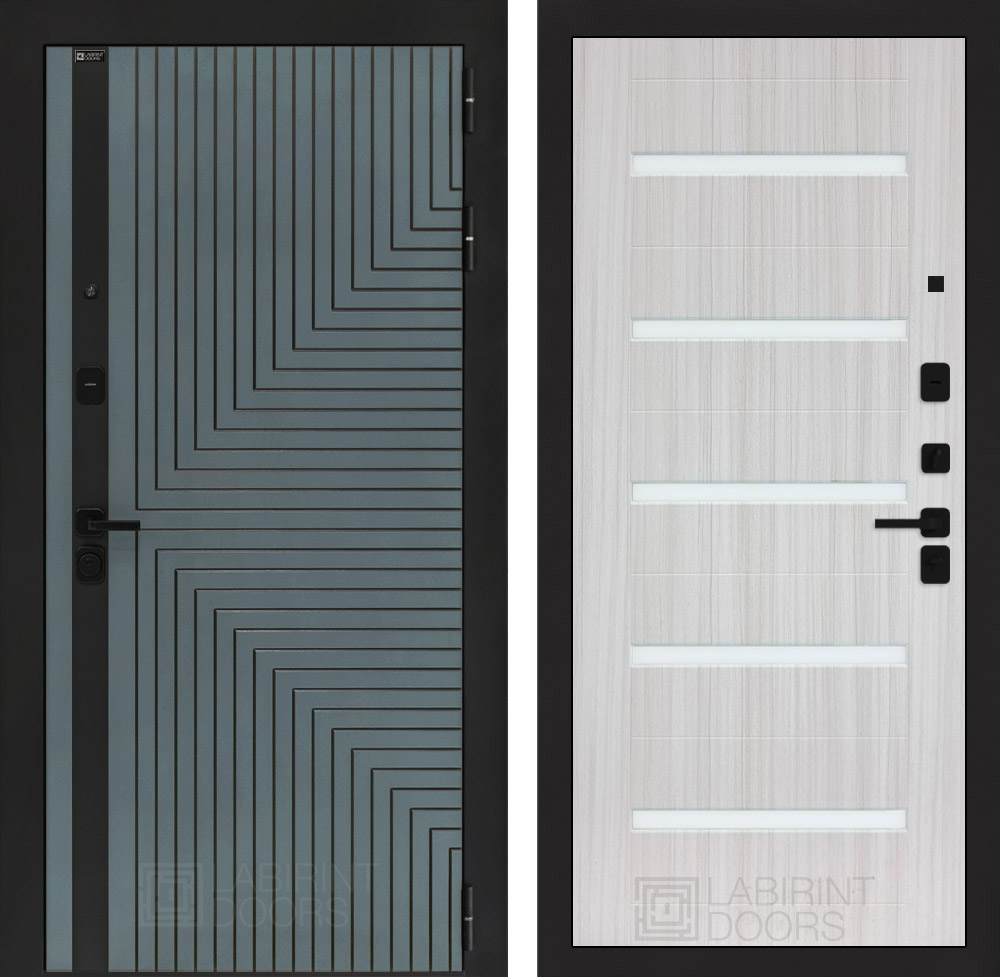 Входная дверь Лабиринт CREDOR 01 Сандал белый, стекло белое
