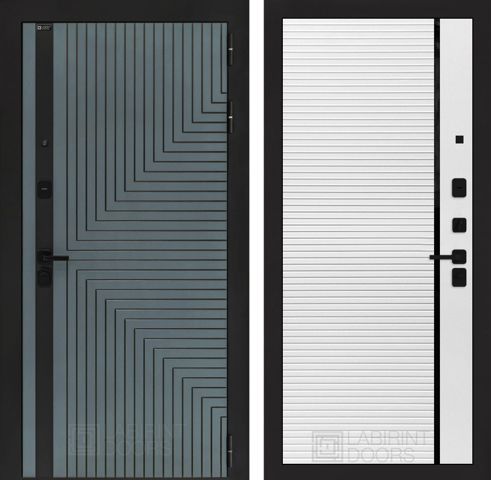 Входная дверь Лабиринт CREDOR 22 Белый софт, черная вставка