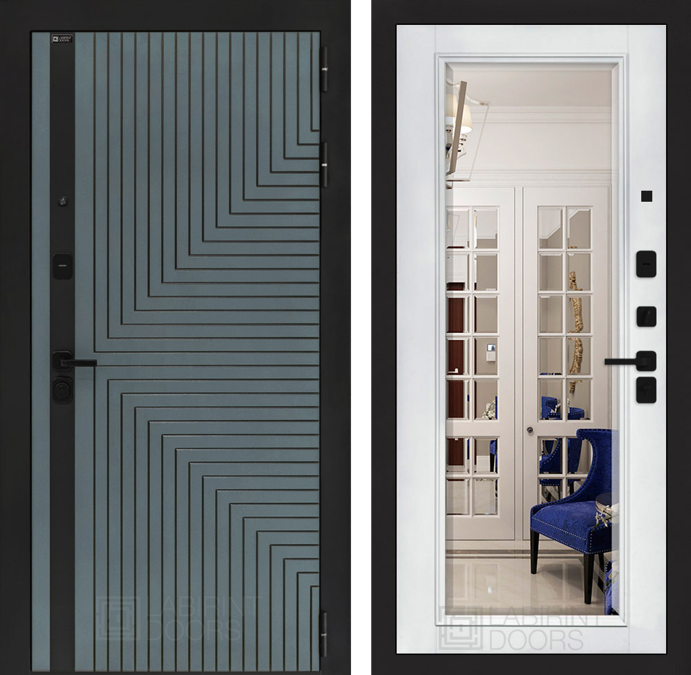 Входная дверь Лабиринт CREDOR Зеркало фацет с багетом Белый софт