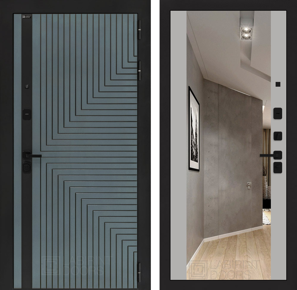 Входная дверь Лабиринт CREDOR с зеркалом Максимум Грей софт