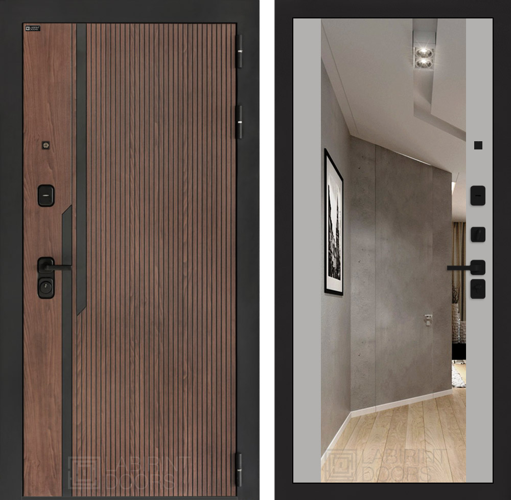 Входная дверь Лабиринт KARMINA с зеркалом Максимум Грей софт