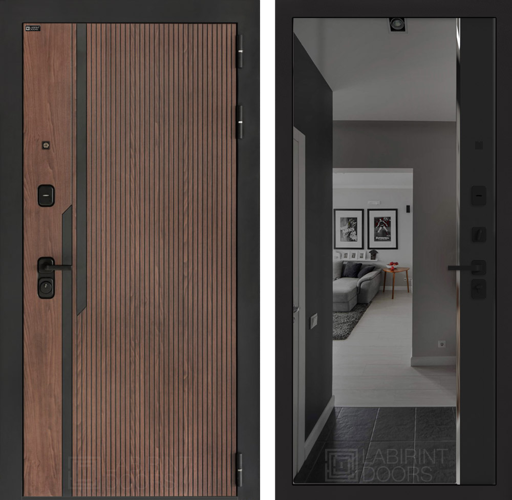 Входная дверь Лабиринт KARMINA с зеркалом Панорама с тонировкой Черный кварц