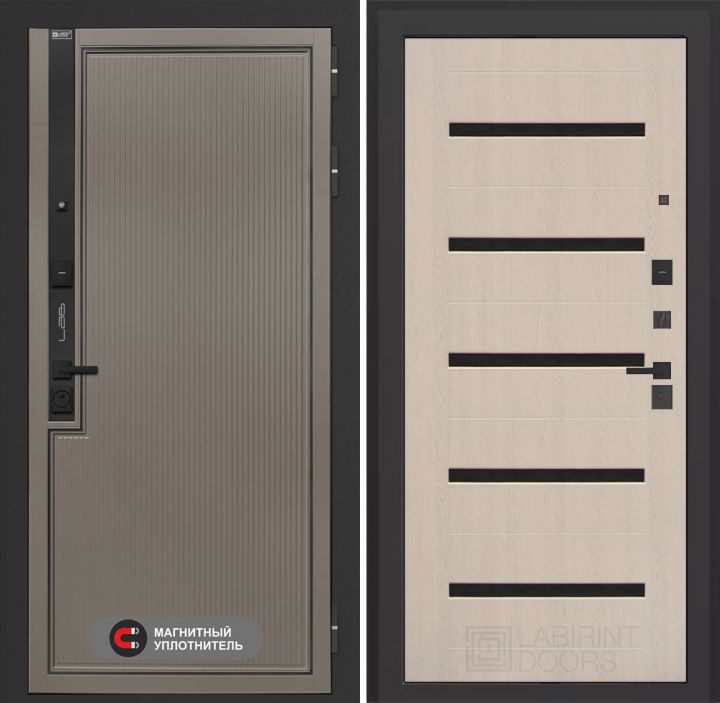 Входная дверь Лабиринт Лаб 1 Про - 01 Беленый дуб, стекло черное