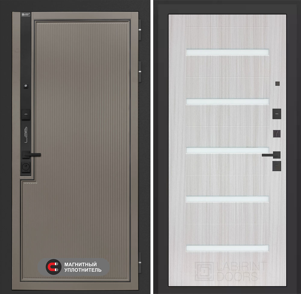 Входная дверь Лабиринт Лаб 1 Про - 01 Сандал белый стекло белое