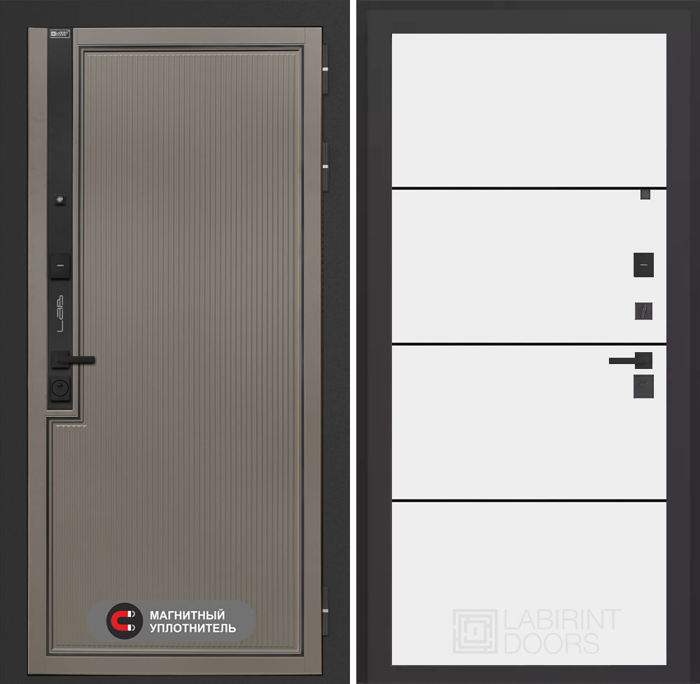 Входная дверь Лабиринт Лаб 1 Про - 25 Белый софт (черная вставка)