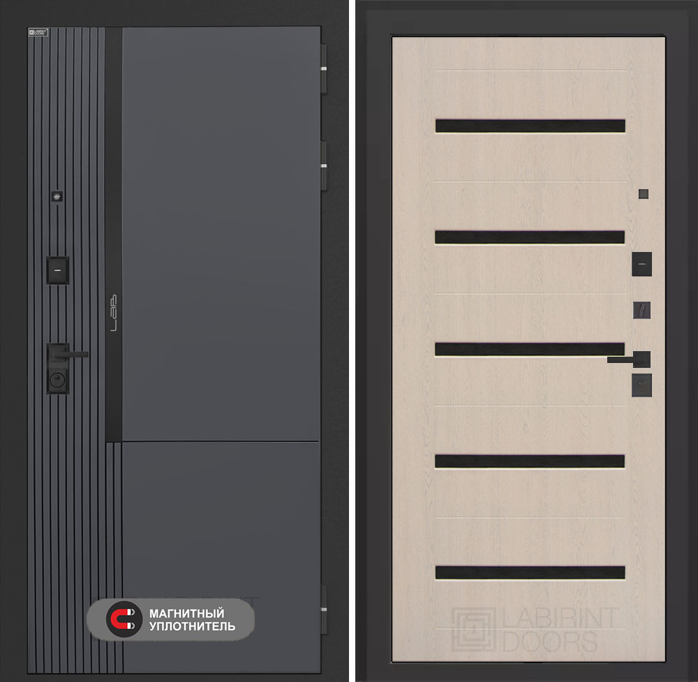 Входная дверь Лабиринт Лаб 2 Про - 01 Беленый дуб, стекло черное