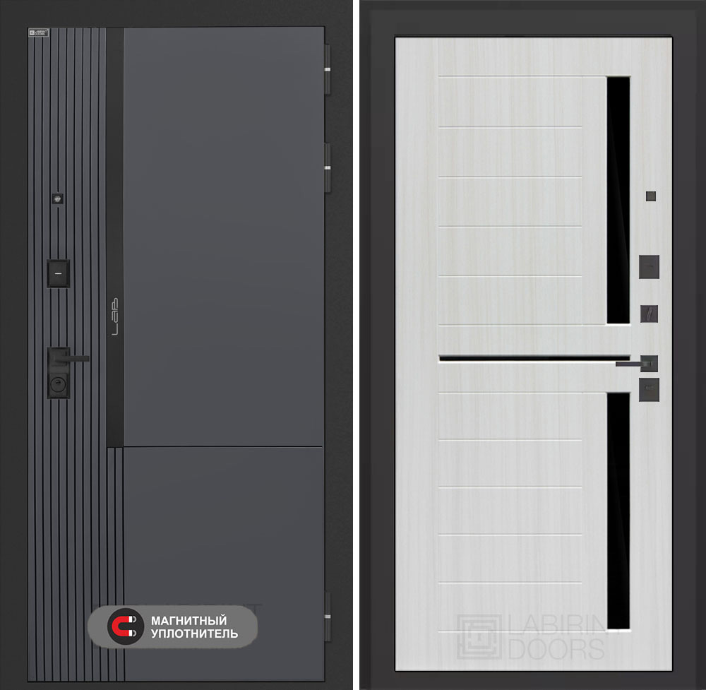 Входная дверь Лабиринт Лаб 2 Про - 02 Сандал белый стекло черное