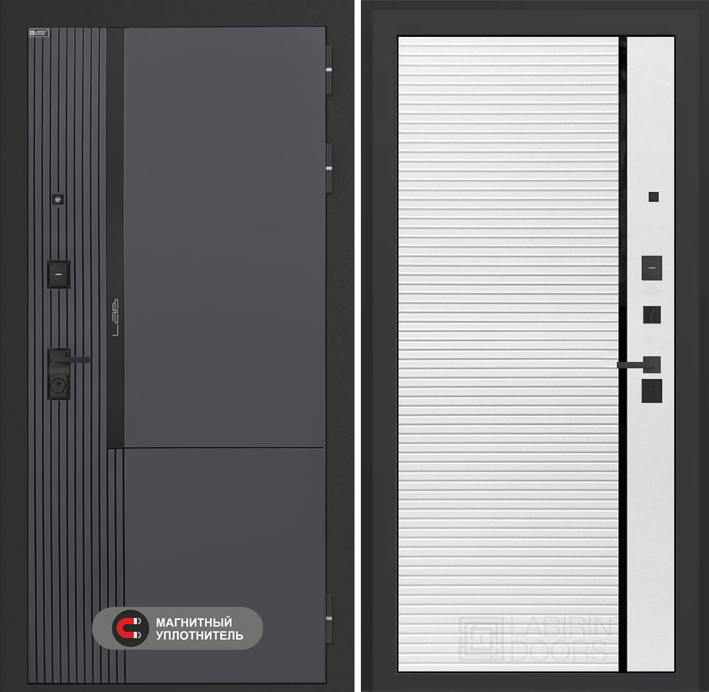 Входная дверь Лабиринт Лаб 2 Про - 22 Белый софт черная вставка