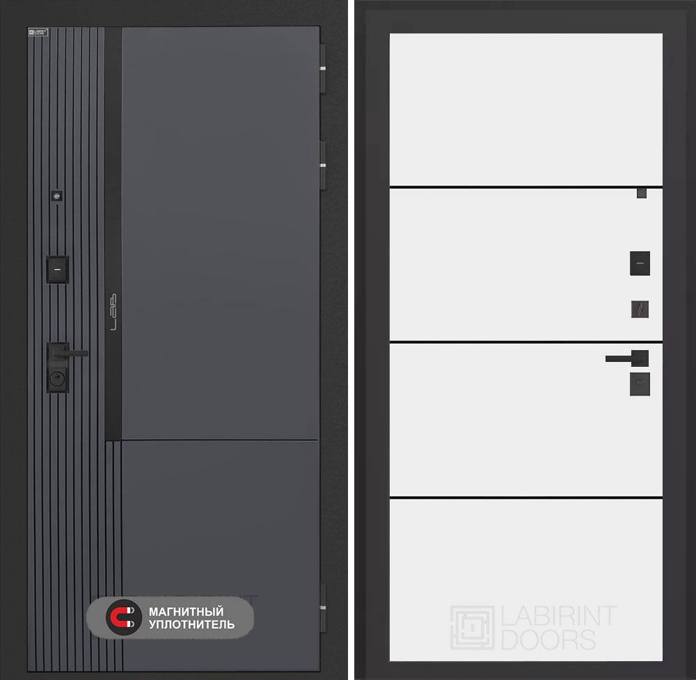 Входная дверь Лабиринт Лаб 2 Про - 25 Белый софт (черная вставка)