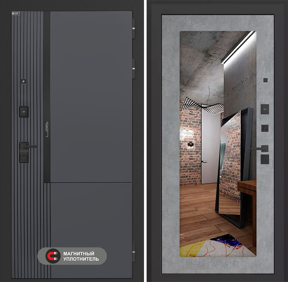 Входная дверь Лабиринт Лаб 2 Про - Зеркало 18 Бетон светлый