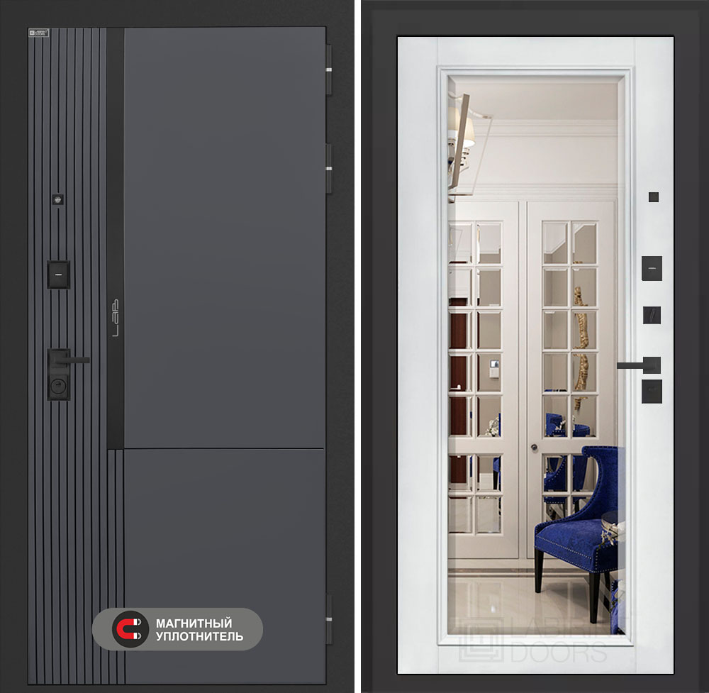 Входная дверь Лабиринт Лаб 2 Про - Зеркало фацет Белый софт