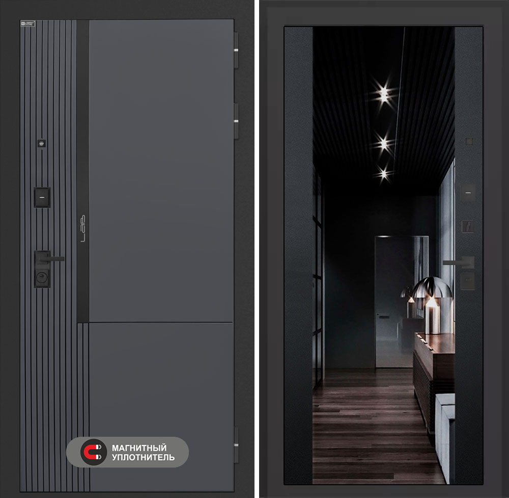 Входная дверь Лабиринт Лаб 2 Про - Зеркало максимум с тонировкой Черный кварц