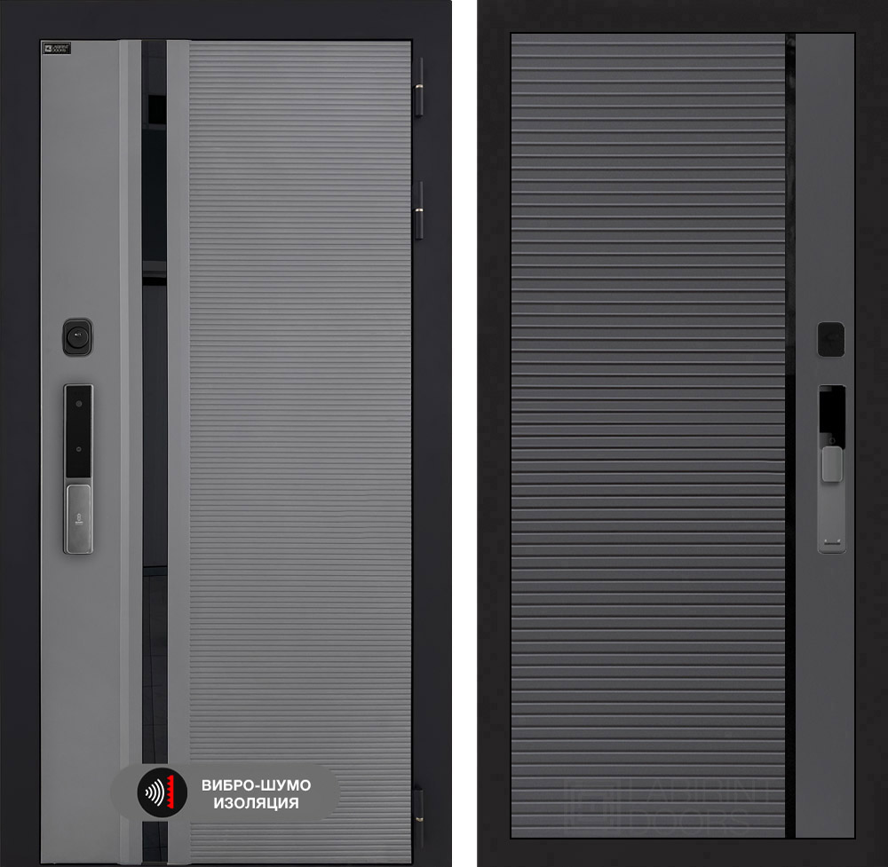 Входная дверь Лабиринт Пиано Смарт - 22 Графит софт черная вставка