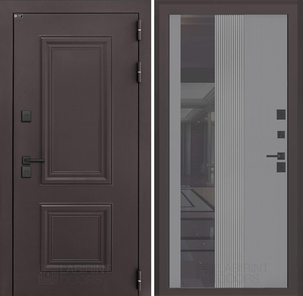 Входная дверь Лабиринт Полярис Лайт - 32 Зеркало серый софт рельеф с терморазрывом