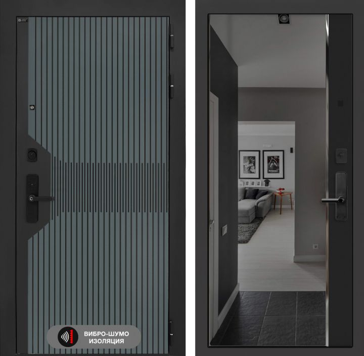 Входная дверь Лабиринт Смартлаб - Зеркало панорама Черный кварц с тонировкой