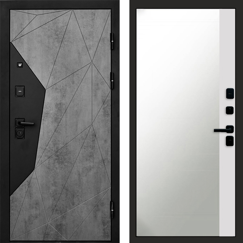Входная дверь Termo-door Авангард Бетон - Широкое Зеркало Фацет Белый софт