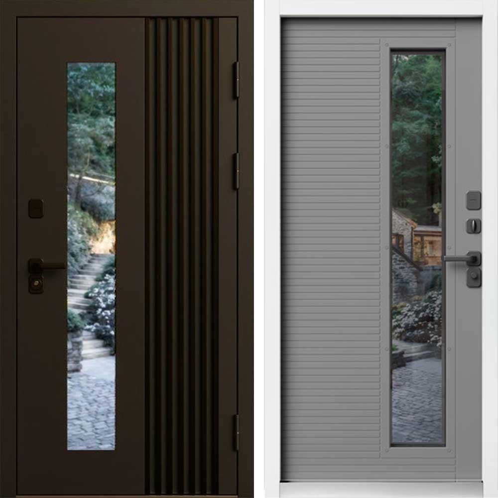 Входная дверь Termo-door Фортис Муар коричневый 8019 - Грей софт, белый короб с терморазрывом и стеклопакетом