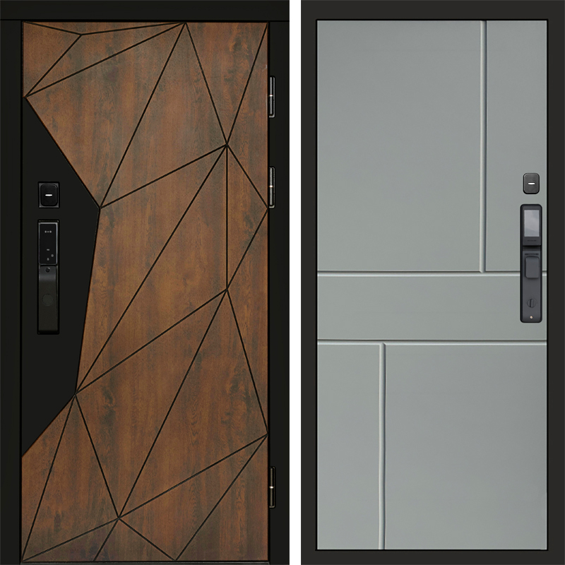 Входная дверь Termo-door ГЕОМЕТРИЯ с электронным замком Горизонт Грей Софт