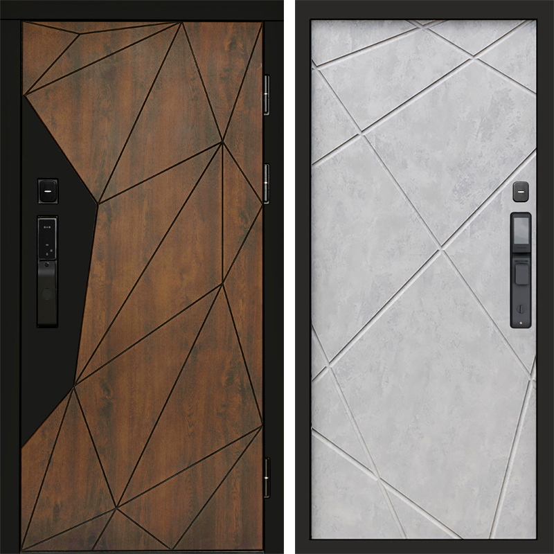 Входная дверь Termo-door ГЕОМЕТРИЯ с электронным замком Лучи бетон светлый