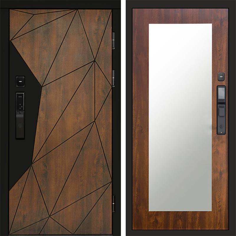 Входная дверь Termo-door ГЕОМЕТРИЯ с электронным замком Зеркало Триумф дуб