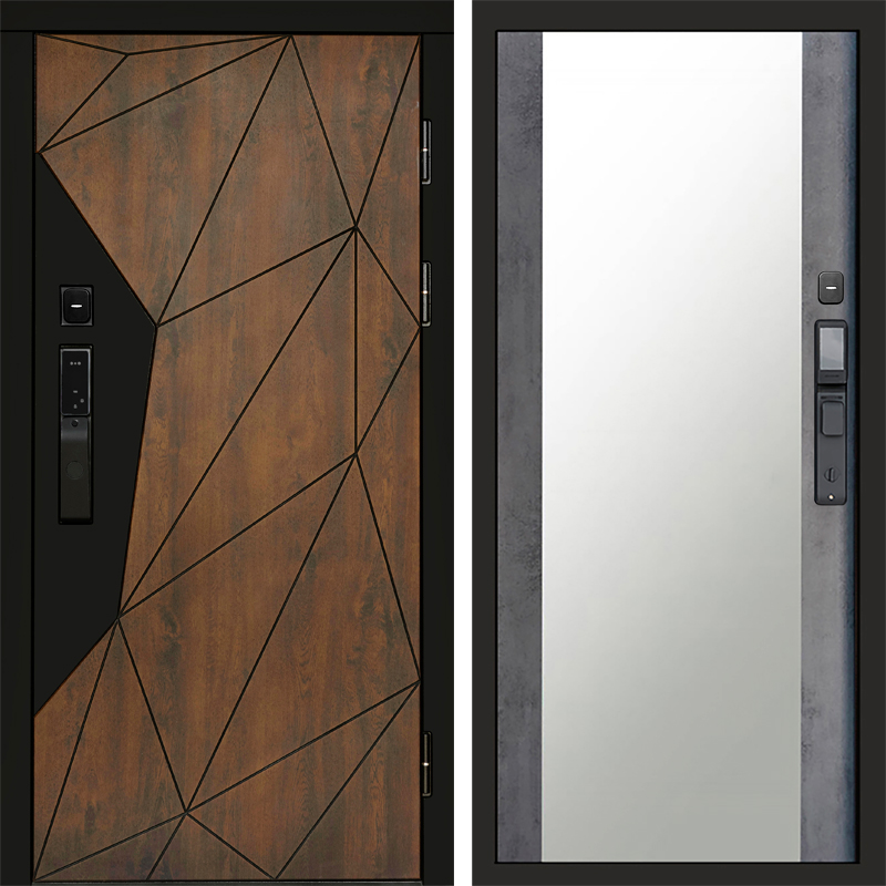 Входная дверь Termo-door ГЕОМЕТРИЯ с электронным замком Зеркало бетон темный