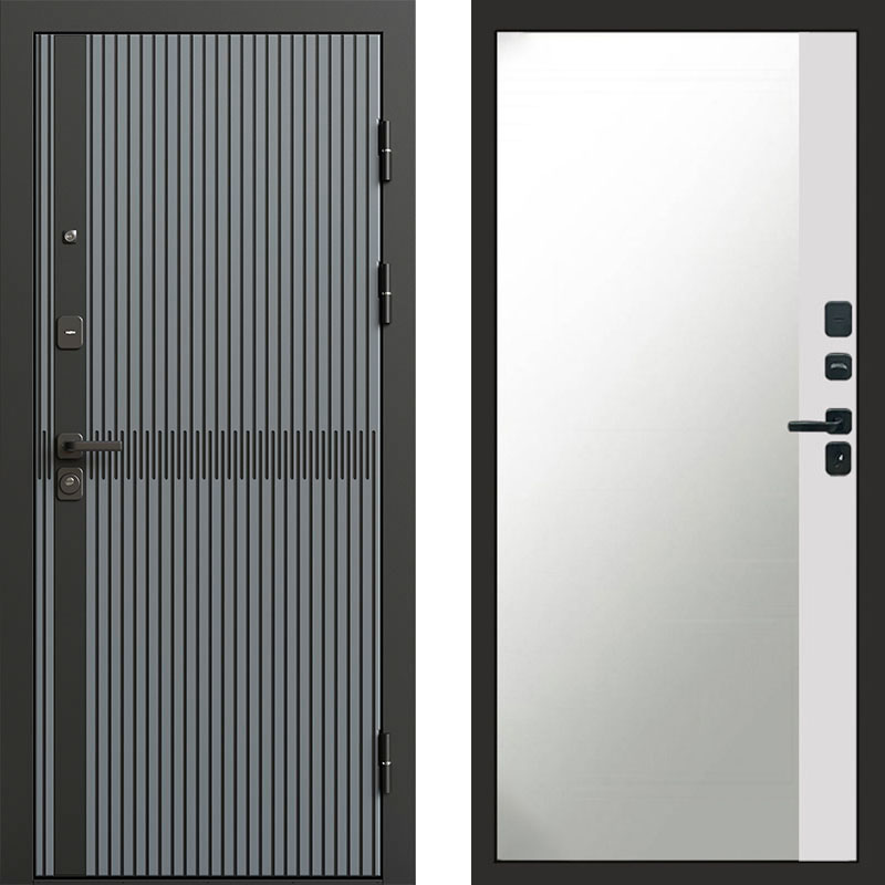 Входная дверь Termo-door Граунд Грей - Широкое Зеркало Фацет Белый софт