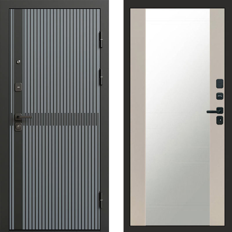 Входная дверь Termo-door Граунд Грей - Зеркало Слоновая кость